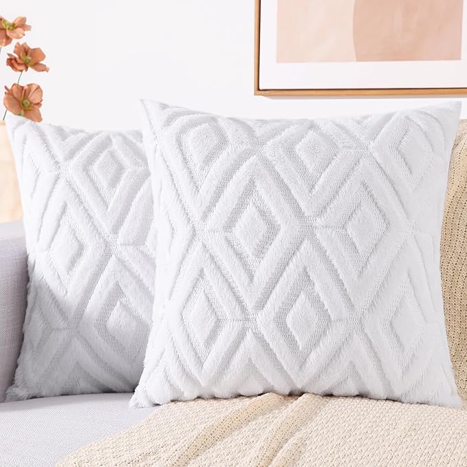- UNIQUE DESIGN: The decorative pillow covers feature a 3D diamond faux fur pattern, giving your home an elegant look. With great workmanship and tight zigzag over-lock stitches on the seams, our throw pillow covers are thick and sturdy enough for long-term use