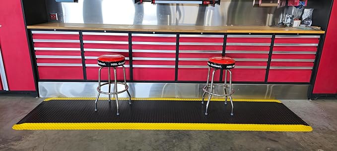 Rhino Mats, American Classic Diamond Anti-Fatigue Mats, Industrial Ergonomic Comfort Standing Mat for Work, Home, Garage, Office, Kitchen or Anywhere (Black/Yellow 1" Thick, 3 FT. x 23 FT.)