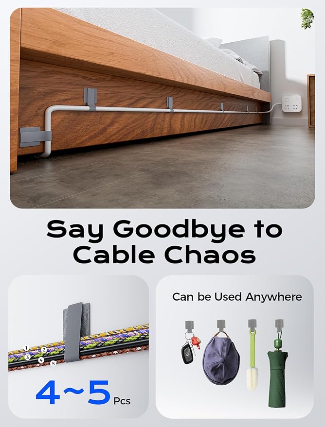 - 【Adjustable & Reusable】These cable management ties for electronics allow for easy adjustment, removal, and reuse to accommodate different cable sizes. You can adjust the strap to fit the total thickness of all the wires and secure it firmly. (Tips: For optimal aesthetics and practicality, avoid fastening more than four cords together. If you need to secure multiple cords, consider separating them into two or more lines, which will also make management easier.)