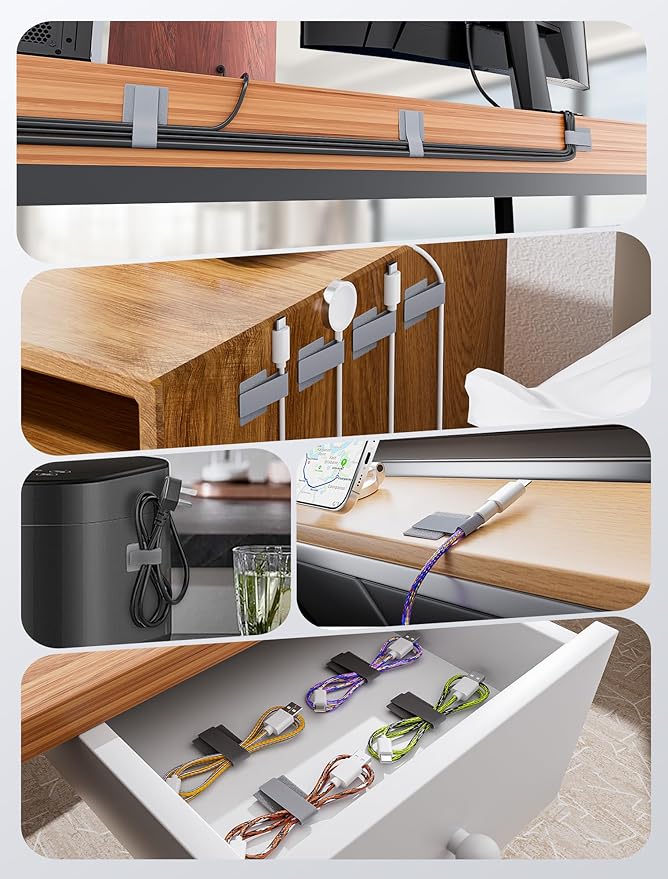 - 【Strong Back-Glue Adhesive】Featuring a strong adhesive that leaves no residue. Our adhesive cable ties bond securely to surfaces, keeping your cables tidy, whether under tables or beside electronics. For best results on walls, apply the product and wait 24 hours before attaching cables, as rough surfaces require time for the adhesive to bond. (When using it on walls, please think twice before applying, because the product may cause the wall paint to peel off due to its strong adhesive.)