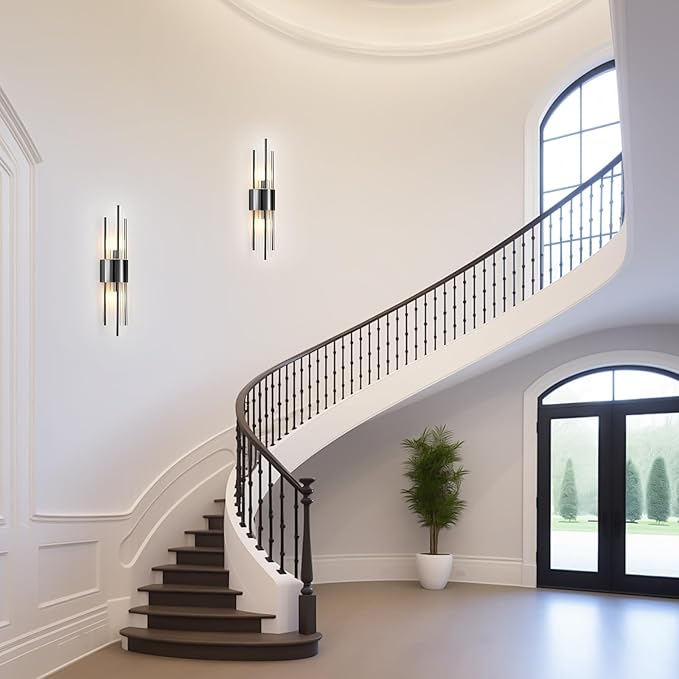 - 【Unique Design】Our black wall sconces set of two Set is carefully assembled from shiny crystal glass rods of different lengths. Blending the clear crystal rods with the sturdy black stainless steel body, the texture is unparalleled. This Black sconces wall set of 2 The soft and even light transmission creates a unique atmosphere of warmth, luxury and romance in your interior space Free 4pcs E12 light source Product needs to be hardwired into the box. Cannot run on LED batteries alone.Specifications are 22.44in heightX 4.72in widt Not battery operated