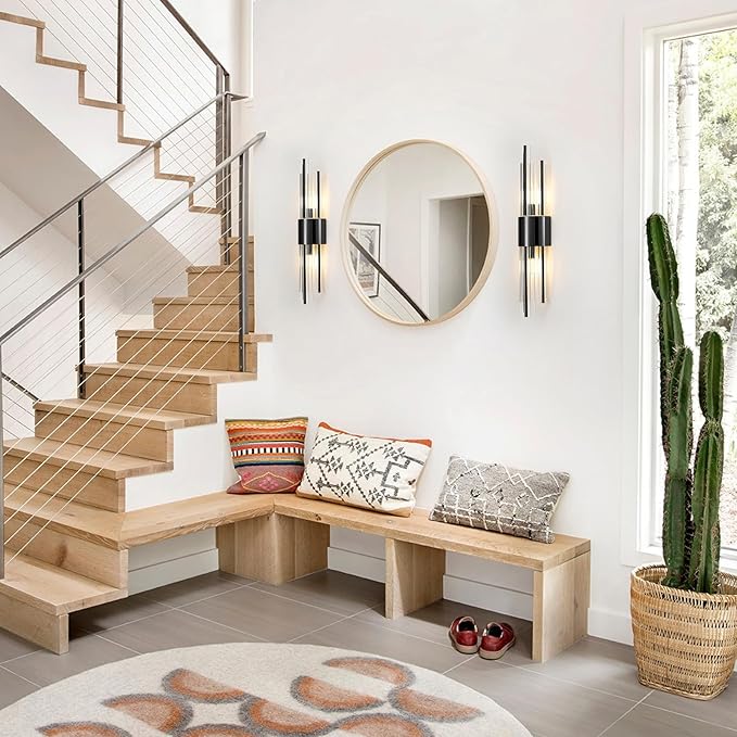 - 【Size and Application Scenario】This luxury interior wall lights set of two piece set is 22.44 inches long, 4.72 inches wide and 2.36 inches high, which can add elegance and romance to any room.This bathroom Black sconces wall set of 2 can provide plenty of brightness and warmth for your living room, bedroom, bathroom, den, dining room, vanity, hallway, and staircase, which makes your living space more comfortable and pleasant