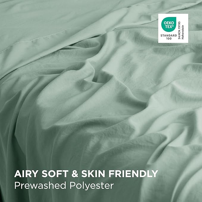 - Airy Soft: Made from prewashed polyester material with a cotton-like texture, this bed sheets offers a soft, skin-friendly feel, providing ultimate comfort for a restful night’s sleep.