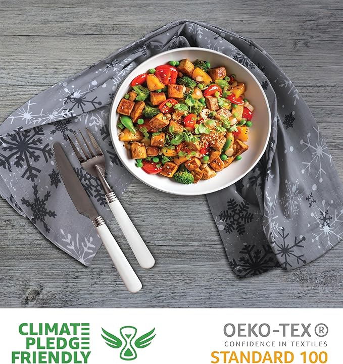 Urban Villa Christmas Kitchen Towels Grey Snowflake Print Premium Quality 100% Cotton Dish Towels Mitered Corners Over Sized 20X30 Inches Set of 6 Highly Absorbent Kitchen Towels with Hanging Loop