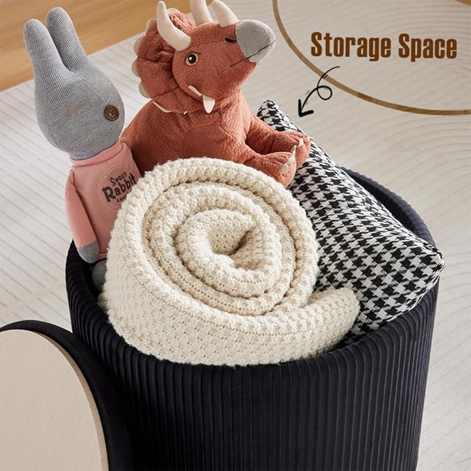 - [ Larger Size, Larger Capacity] The velvet round ottoman with storage have 2 sizes: 17"D x 17"W x 18"H (Larger) 15"D x 15"W x 15"H(Small),the large size mean more confortable for sitting and much more storage space.This footrest stool is so stable that it can hold up to 300 pounds.