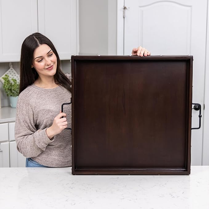 - π EFFORTLESS TRANSPORT β Featuring sturdy iron handles, this 24" x 24" x 2.5β rustic wood ottoman tray is easy to carry from kitchen to table, ensuring seamless service during gatherings or daily routines.