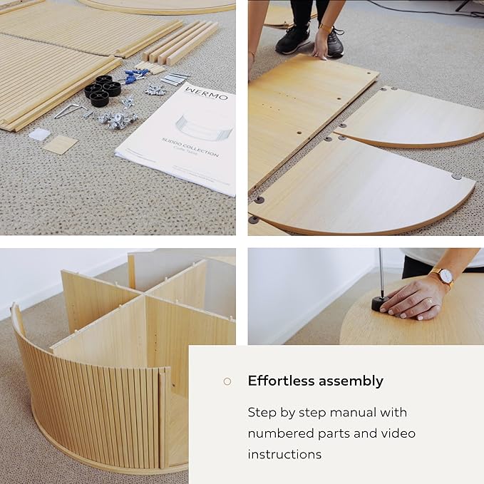 - BE THE NEXT FAN OF THE EASY 45 MINUTE ASSEMBLY as all of the furniture details of the fluted coffee table are numbered for easy identification. This makes following the written step by step manual and instruction video convenient. The assembly is designed for simplicity, so you can start enjoying your new coffee table from the moment you unpack it.