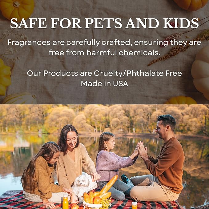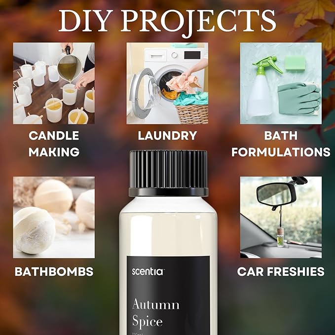 - Cozy Fall Scent – Embrace the season with Scentia’s Autumn Spice, a luxurious fall fragrance featuring hints of pumpkin spice, citrus, pine, and warm spices. Middle notes of lavender, jasmine & cypress bring balance, while cedar, raspberry crystals & vanilla create a cozy, inviting finish.