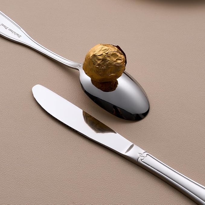 - Premium Stainless Steel: Crafted from high-quality stainless steel, our cutlery set is durable, resistant to rust and corrosion, ensuring long-lasting use while maintaining a polished shine—a reliable stainless steel silverware set for everyday dining.
