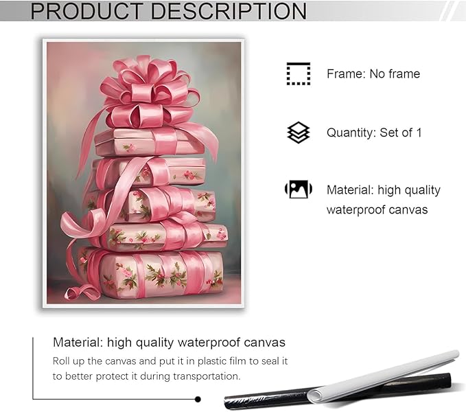 - Perfect for Shabby Chic and Winter Decor: The soft pink tones and vintage vibe make this canvas print perfect for a shabby chic home, adding a feminine touch to your Christmas or winter decorations.