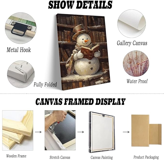 - Premium Canvas Quality: Printed on high-quality canvas with vibrant, fade-resistant inks, the snowman and holiday details come to life, ensuring this piece remains a bright and cheerful addition to your home for years to come.