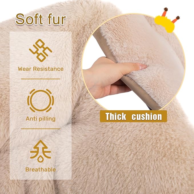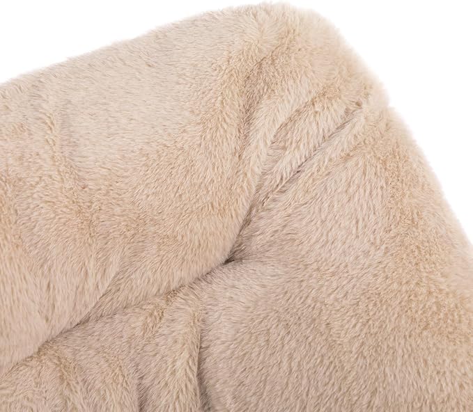 HollyHOME X-Large Saucer Chair with Foldable Ottoman, Comfy Oversized Folding Chair and Folding Footrest Stool Set, Faux-Fur Reading Chair and Footstool for Living Room, Light Khaki Chair&Stool