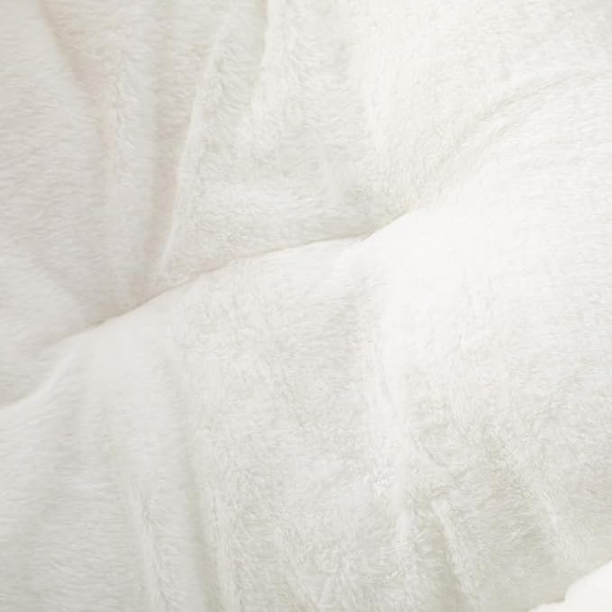 HollyHOME X-Large Saucer Chair with Foldable Ottoman, Comfy Oversized Folding Chair and Folding Footrest Stool Set, Faux-Fur Reading Chair and Footstool for Living Room, Bedroom, White Chair&Stool