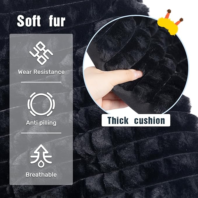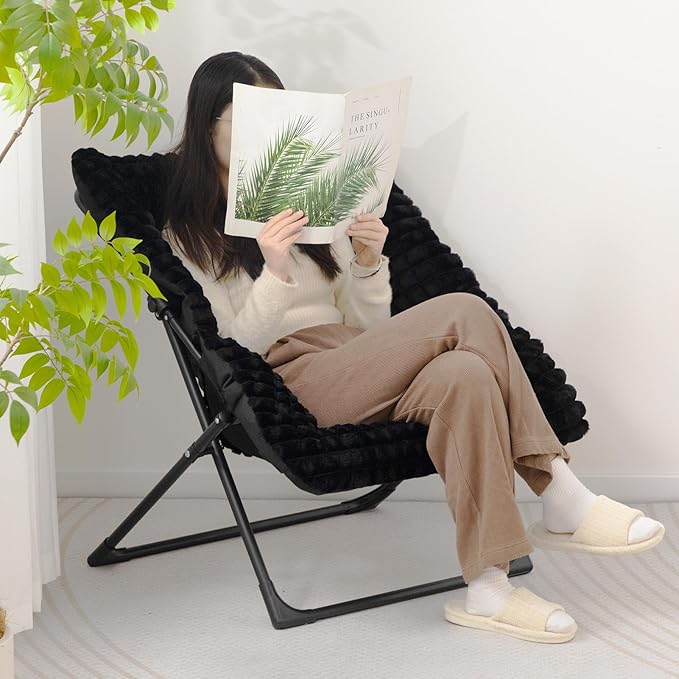 HollyHOME X-Large Saucer Chair, Comfy Oversized Folding Chair, Faux-Fur Reading Chair for Teens, Adults, Foldable Accent Lazy Chair, Metal Lounge Chair for Living Room, Bedroom, Dorm, Grid Black