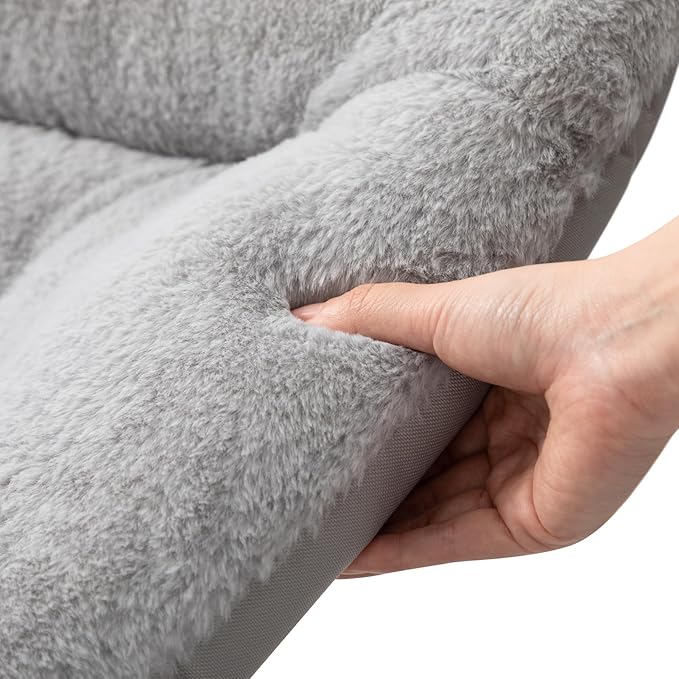 HollyHOME X-Large Saucer Chair with Foldable Ottoman, Comfy Oversized Folding Chair and Folding Footrest Stool Set, Faux-Fur Reading Chair and Footstool for Living Room, Bedroom, Grey Chair&Stool