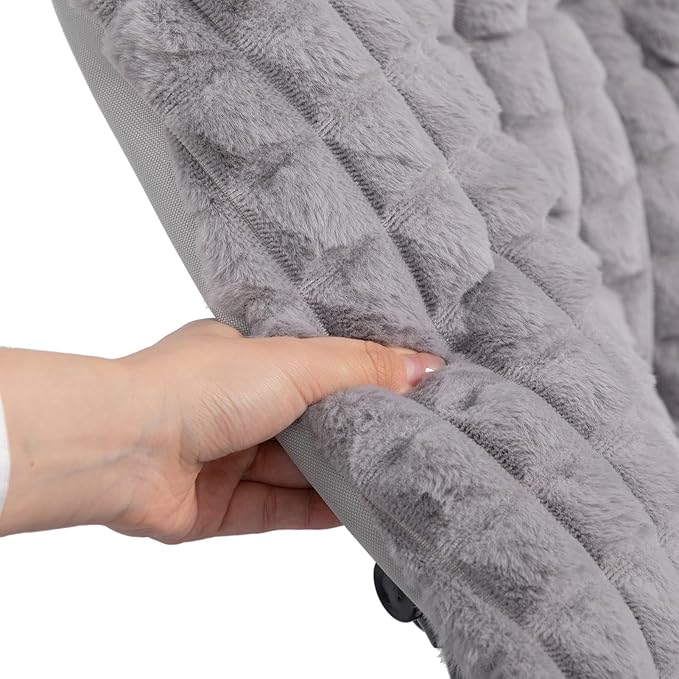 HollyHOME X-Large Saucer Chair, Comfy Oversized Folding Chair, Faux-Fur Reading Chair for Teens, Adults, Foldable Accent Lazy Chair, Metal Lounge Chair for Living Room, Bedroom, Dorm, Grid Blue&Grey