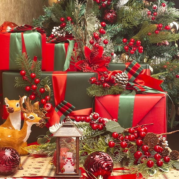 - Vibrant Assortment: Each pack includes assorted red berry picks stems, faux pine picks spray, and delightful accents like pinecones, apples, and holly leaves, ensuring a stunning variety for your creative projects.