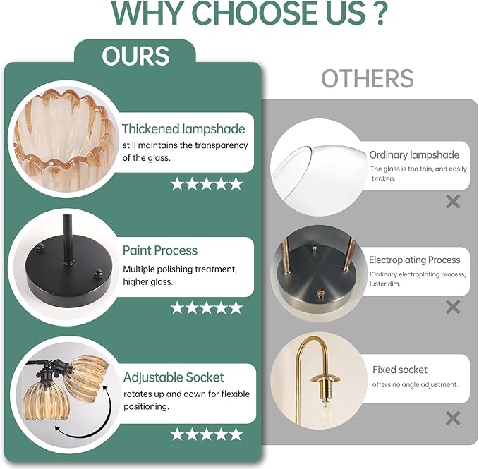 - 【Amber Tone】This is the most striking feature of the wall lamp. The glass texture is clear and can penetrate the light well, and the amber glass not only gives the luminaire a warm and deep luster, but also softens the light and creates a comfortable and emotional atmosphere.