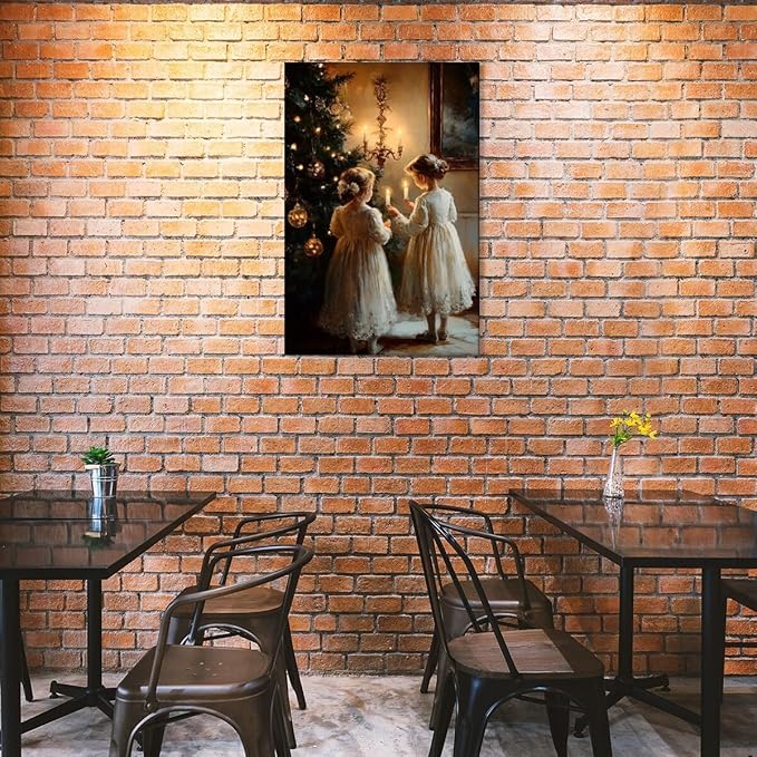 Vintage christmas wall art christmas tree wishing girl canvas poster winter room holiday decoration for farmhouse cabin living room bedroom Framed20x30inch