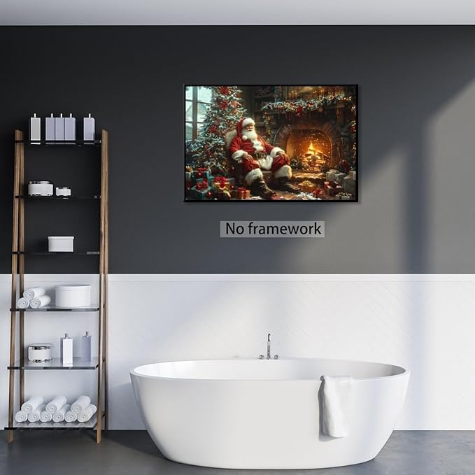 Vintage christmas wall art christmas tree gift canvas poster winter room holiday decor santa claus cozy fireplace decoration for living room bedroom Unframed18x12inch