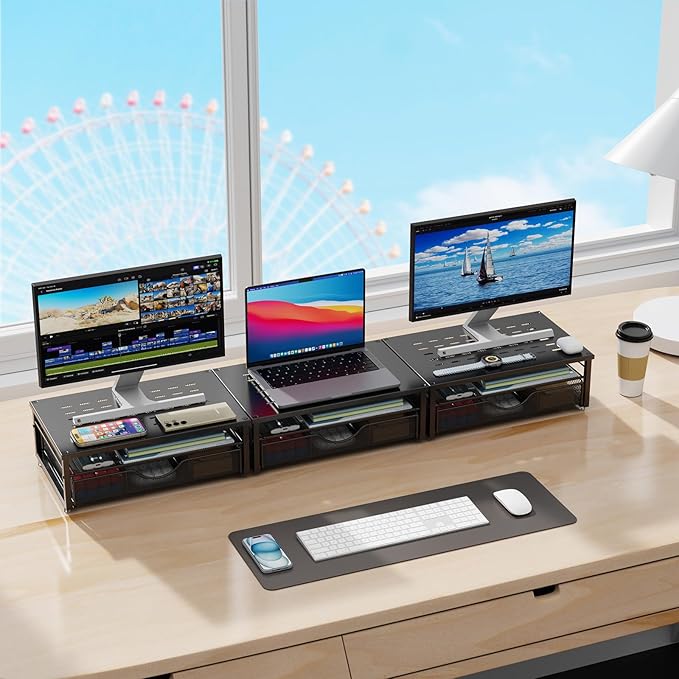 gianotter Computer Monitor Stand Riser, Desk Organizers and Accessories with Drawer, Office Desk Accessories & Workspace Desktop Organizers Storage for Printer Stand (Black)