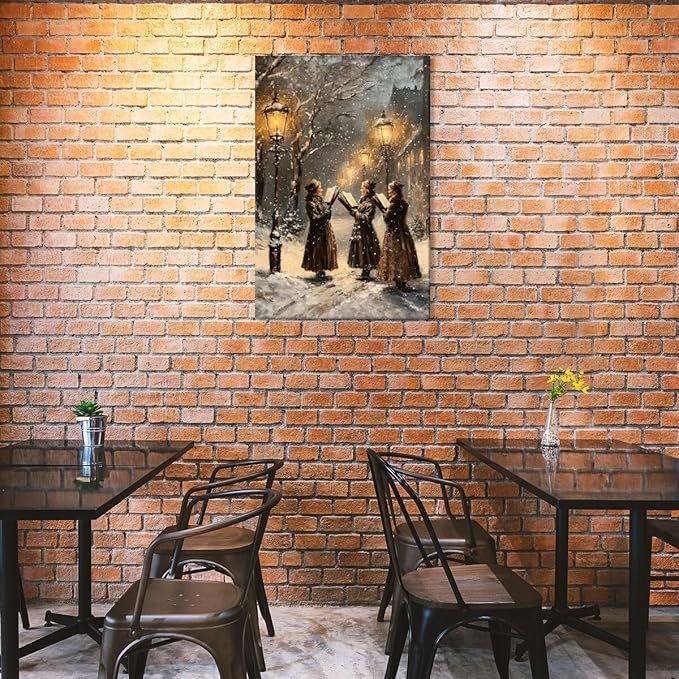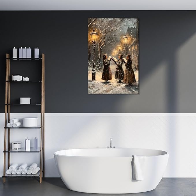 Medpol Vintage christmas wall art snow christmas carolers moody wall decor winter canvas poster for holiday decor apartment dormitory Framed12x18inch
