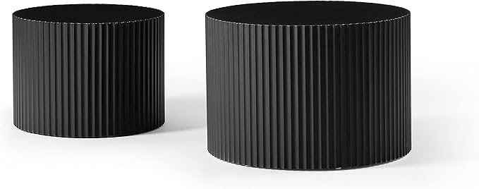 Nesting Coffee Tables Set of 2, Black Round Coffee Tables for Living Room Modern Fluted Tea Tables 23.6" Wooden Drum Accent Tables for Living Room, No Assembly Required (Black)