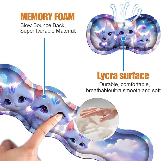 4 in 1 Ergonomic Keyboard Wrist Rest & Mouse Pad Wrist Rest Set, Large XXL Gaming Desk Mat 31.5"x 11.8" with Non-Slip Base, Memory Foam for Home Office Study Gaming, Cute Cat