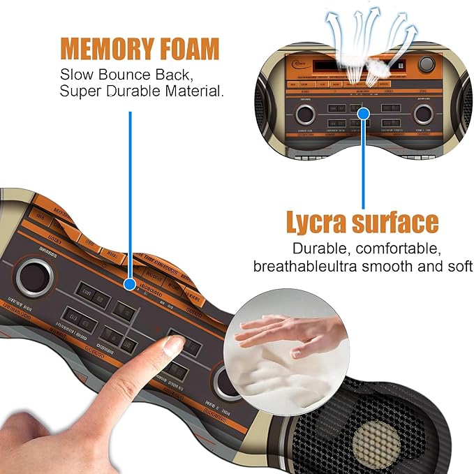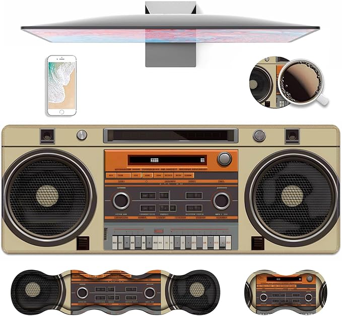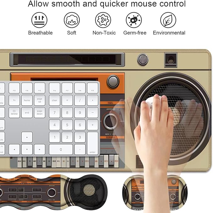 4 in 1 Ergonomic Keyboard Wrist Rest & Mouse Pad Wrist Rest Set, Large XXL Gaming Desk Mat 31.5"x 11.8" with Non-Slip Base, Memory Foam for Home Office Study Gaming, Retro Tape Recorder