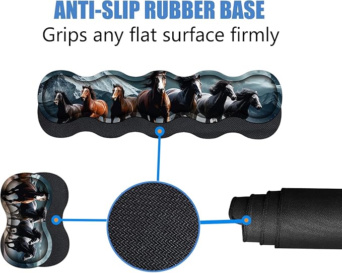 4 in 1 Ergonomic Memory Foam Mouse Pad Wrist Rest Set, Large XXL Gaming Desk Pad + Keyboard Wrist Rest + Mouse Wrist Cushion + Coaster for Home Office Study Gaming, Running Horses