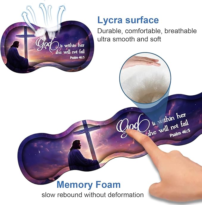 Ergonomic Memory Foam Mouse Pad Wrist Rest Set, Large Gaming Desk Pad + Keyboard Wrist Rest + Mouse Wrist Cushion + Coaster for Home Office Study Gaming, Christian Cross Quote Bible Verse Psalm 46:5
