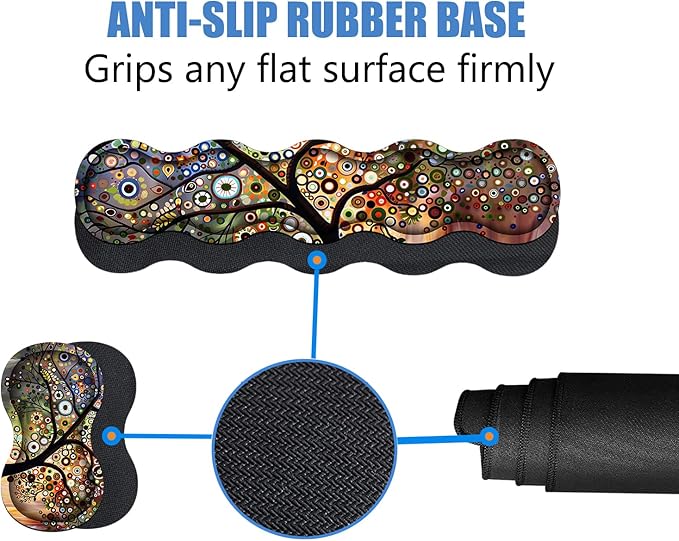 4 in 1 Ergonomic Memory Foam Mouse Pad Wrist Rest Set, Large XXL Gaming Desk Pad + Keyboard Wrist Rest + Mouse Wrist Cushion + Coaster for Home Office Study Gaming, Tree of Life