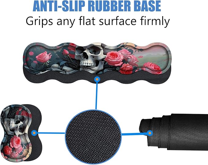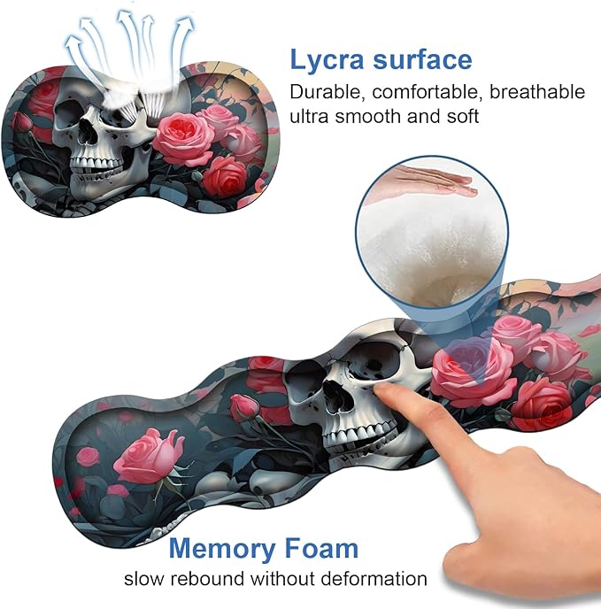 4 in 1 Ergonomic Memory Foam Mouse Pad Wrist Rest Set, Large XXL Gaming Desk Pad + Keyboard Wrist Rest + Mouse Wrist Cushion + Coaster for Home Office Study Gaming, Skull Roses