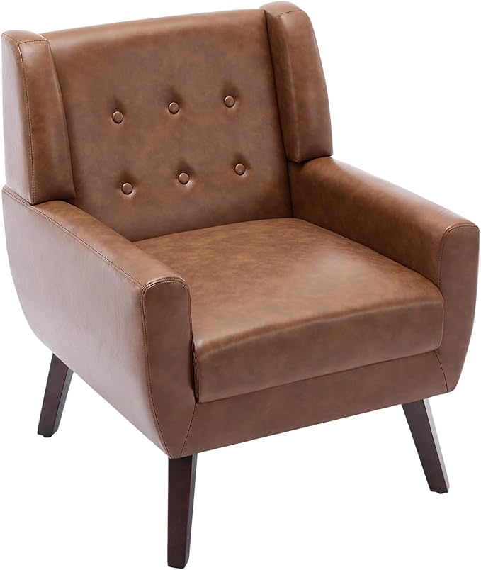 - PU Leather Accen Chair - Upholstered in a solid color, which combined with elegant line design avoids visual fatigue. The Leather Fabric and solid wooden legs are paired with both simplicity and freshness in mind. Whether in a bedroom, living room, playroom, or dorm, it not only brightens up a monotonous corner, but also slim & aesthetic appearance design can match the interior decoration system of your home