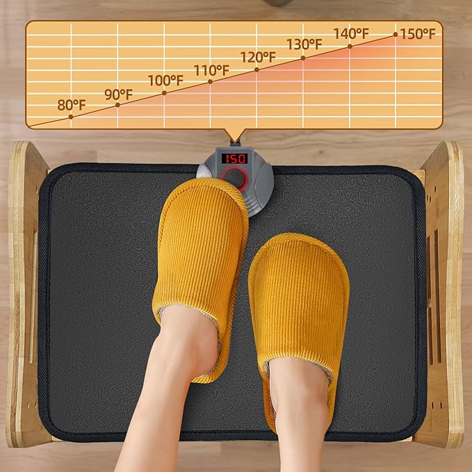 Myplace Bamboo Adjustable Under Desk Footrest with Heating Pad - Warm Ergonomic Foot Rest with 7-Level Adjust, Slanted Foot Rest Stool for Home Office Kitchen Bedroom (Burlywood)