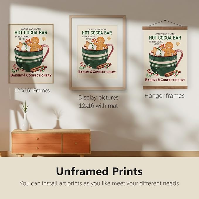 ETVISO Christmas Decor, Gingerbread Christmas Wall Art Prints Set of 4, Winter Holiday Baking Lover Gifts Home Decor, Xmas Bakery Hot Cocoa Porch Wall Decor, 12x16 (Unframed)