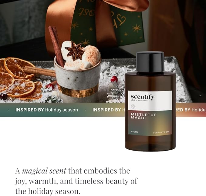 Scentify Holiday Mistletoe Magic Aroma Oil Christmas Refill Scent for Oil Diffusers - Pine, Oak, Moss, Clove, Cedar - Luxurious Relaxing Aromatherapy Fragrance 100ml, 3.38oz