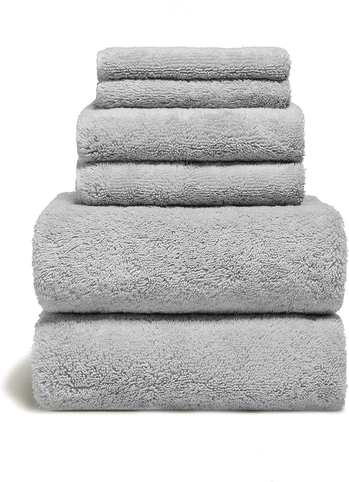 Italic Ultraplush 100% Australian Cotton Towels Standard 6 Piece Set, 2 Bath, 2 Hand, 2 Washcloths, 800GSM Lightweight, Highly Absorbent Quick Dry Soft Resort Grade Towels (Light Gray)