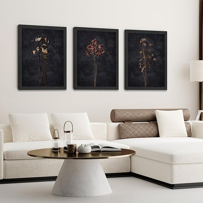 - Elegant Triptych Design: A stunning set of three 12x16" Art Deco prints, moody wall art deco elevate your living space, featuring a minimalist floral design that adds a touch of drama and complexity to your walls. Featuring a floral design, it's perfect for adding a touch of sophistication to any space.