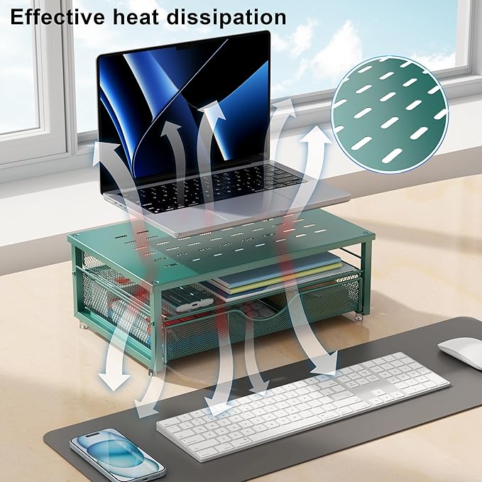 gianotter Computer Monitor Stand Riser, office organizer with Drawer, Office Organizers Storage for Classroom Office Supplies (Dark Green)