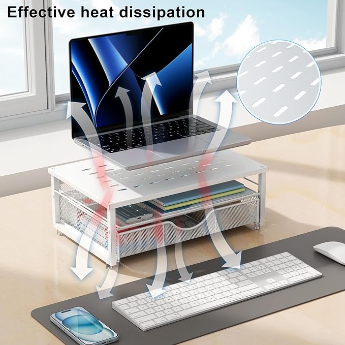 - 【Powerful and stable】: The monitor riser is designed with ventilated heavy steel plates and steel legs, which has a very large load-bearing capacity and effectively prevents equipment from overheating. Non-slip rubber pads provide stability during work.