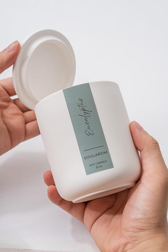Luxury Eucalyptus Scented Soy Candle – 10oz Ceramic Jar with Crackling Wooden Wick, 60+ Hour Burn – Elegant Aromatherapy Candle for Home Décor & Gifts