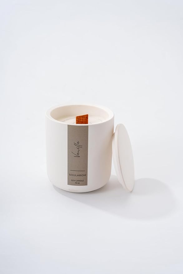 Luxury Vanilla Scented Soy Candle – 10oz Ceramic Jar with Crackling Wooden Wick, 60+ Hour Burn – Elegant Aromatherapy Candle for Home Décor & Gifts