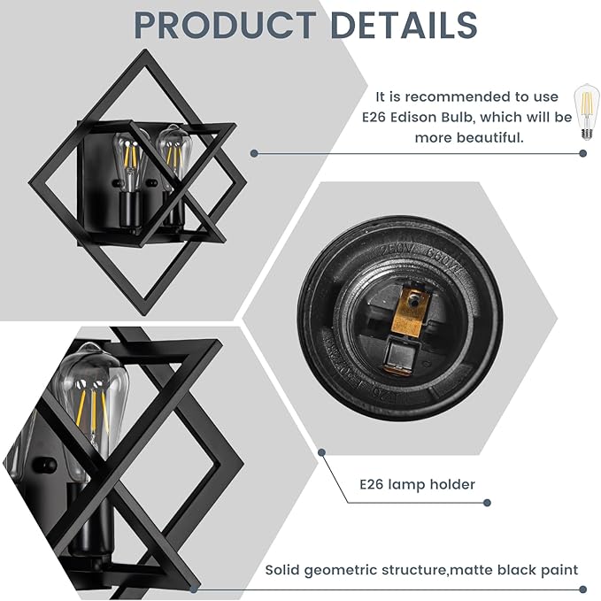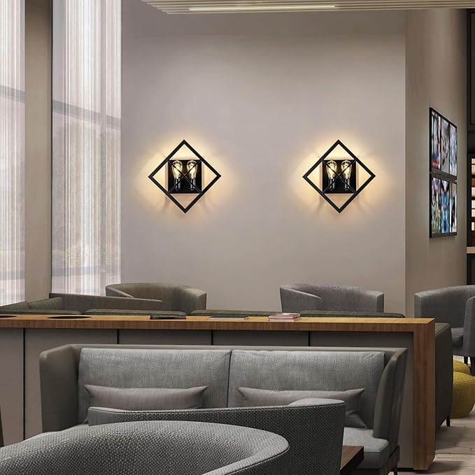 - 2 Light Black Wall Sconces:The modern wall sconce supports any E26 base (max 60W each); Our living room wall sconces is dimmable when used with compatible dimmable bulbs ,Suggest to choose Edison bulbs to create the retro vibe (bulbs and dimmer not included)