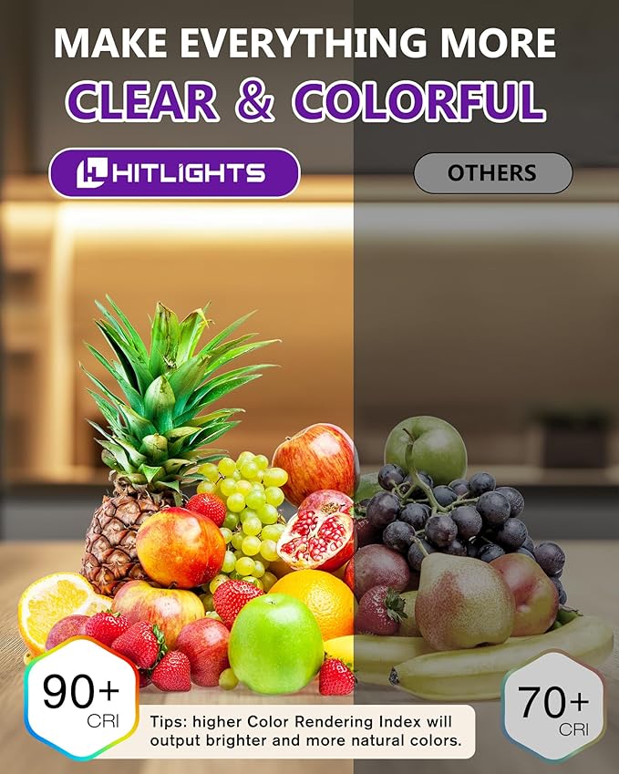 - 12V LED LIGHT STRIP KIT: HitLights COB LED strip lights are the ultimate in energy efficiency, high brightness, and even lighting. These LED strip lights leave smooth and spotless lighting where hot spots are eliminated and appear as a single light