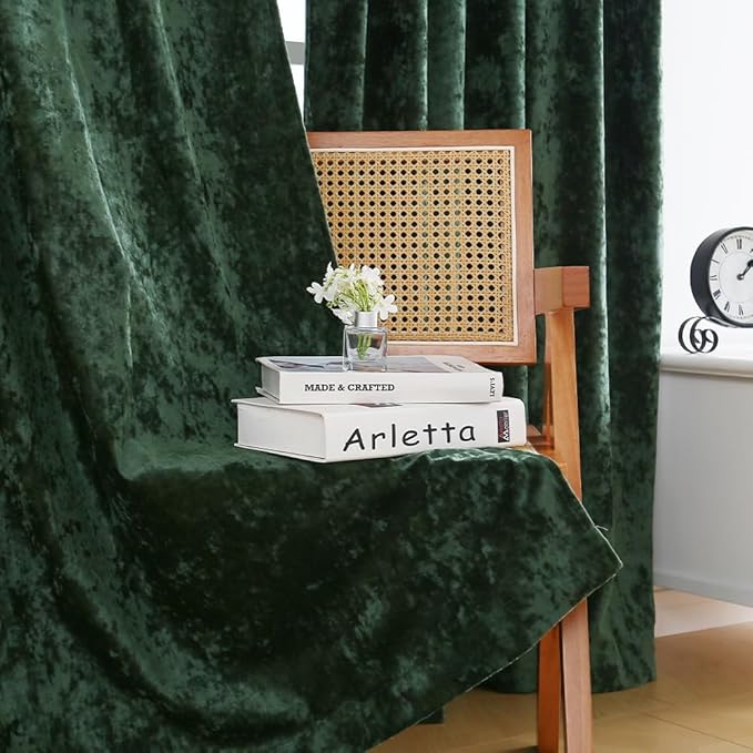 - VELVET CURTIANS: Made of durable light reducing velvet textured Fabric in the front and high- density polyester fabric in back, which is blackout, noise reducing and breathable. This curtain has been preprocessed so that it has the stronger sense of vertical and pendulous. This velvet curtain is very silky and soft to the touch