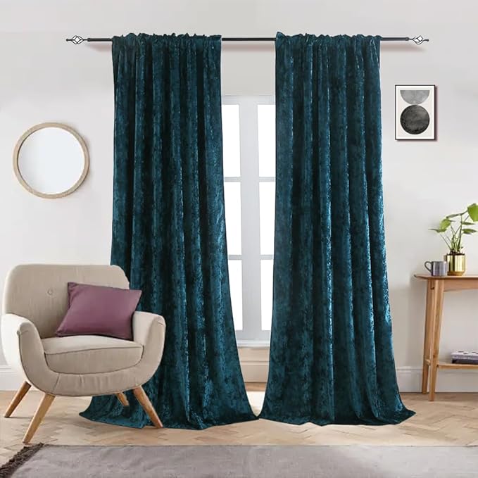 Velvet Blackout Curtains Soft Luxury 2 Panels Curtains for Bedroom Nursery Patio Doors Rod Pocket Back Tab Drapes Curtains for Living Room,52 by 108 Inch, Teal
