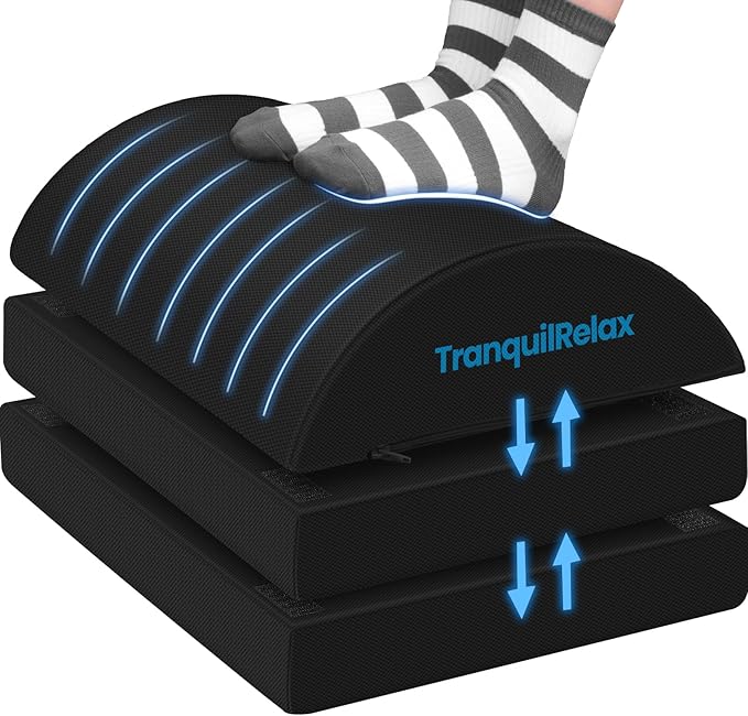 - Versatile Design: Use it under your desk for ergonomic leg support, under your knees for extra comfort, or flip it into a rocking foot rest for relaxation. This compact, adaptable foot rest brings comfort wherever you need it