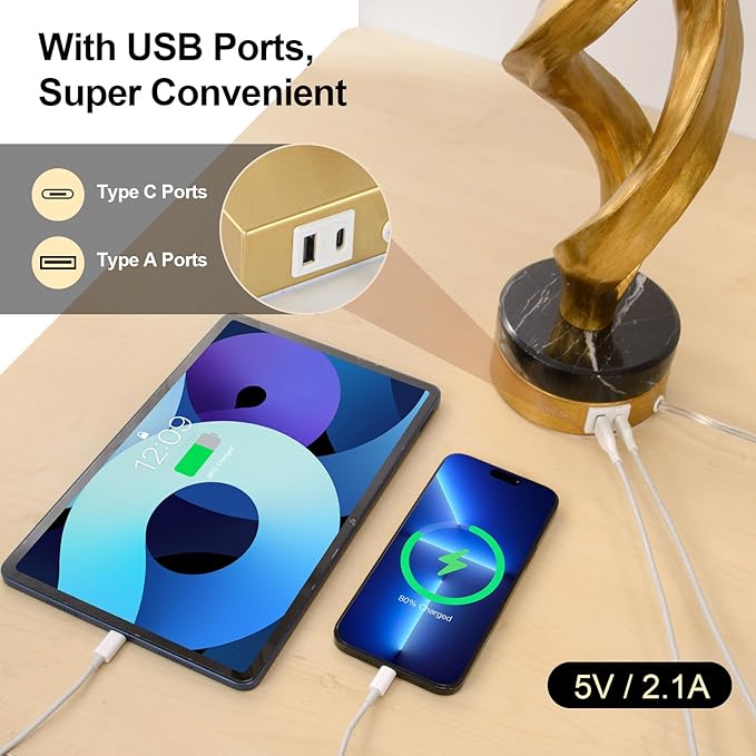 - SUPER CONVENIENT TABLE LAMP WITH USB PORT: Table lamp for bedroom is built-in with a USB-C port & USB port, stable maintain 5V 2.1A output, bedside lamp great idea to charge your phone, laptop and other electronic devices when plug in (No matter lights on or off), fully save your time and space. 5ft plenty long enough cord table lamp with USB port, easy reach outlets, really enhances functionality without compromising on aesthetics.