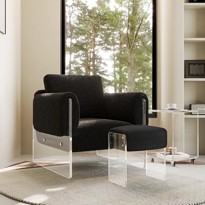 Vanity Stool Chair and Foot Rest -Modern Vanity Stool and Footstool with Wool and Acrylic Leg for Makeup Room, Living Room , Bedroom, Boucle Ottomans for Birthday, Christmas, Halloween, Easter Gifts